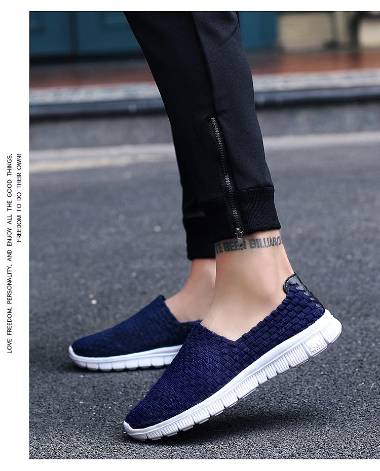 Men Sneakers Summer Shoes Casual Flats Breathable Woven Loafers Slip On Handmade 2020 Fashion Valentine Footwear Size 35-44